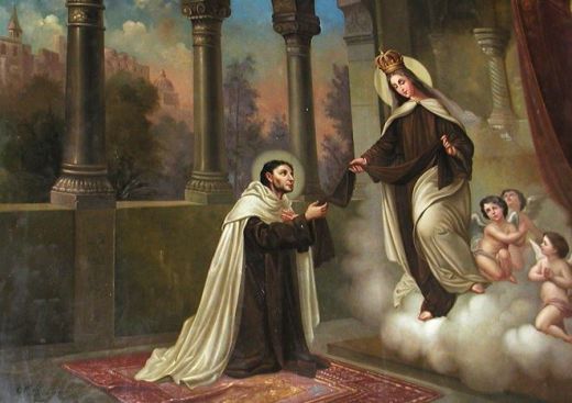 La Virgen le dijo estas palabras:<<Hijo amado, recibe este Escapulario para tu Orden (la de los carmelitas). Es la señal propia de un privilegio que he obtenido para vosotros y para todos los hijos de Dios que me honran bajo la advocación de Nuestra Señora del Monte Caramelo. Los que mueran devotamente llevando puesto este Escapulario serán salvados del fuego eterno.>>