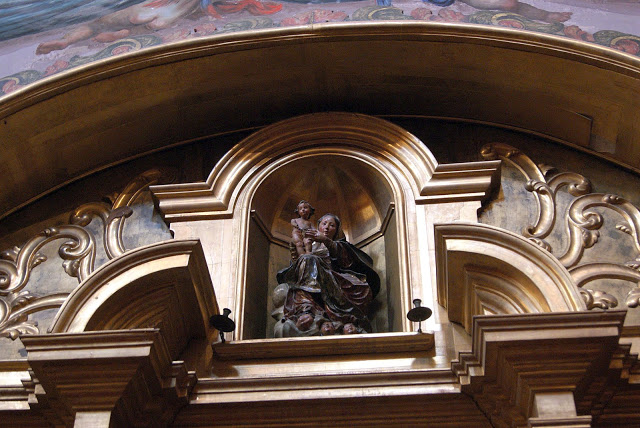 Destaca de esta portentosa Virgen con el Niño Jesús los pliegues de la ropa, como la dulzura de los rostros de ambas imágenes y la nube de querubines donde se asienta. Una magnífica obra, que como tantísimas otras pasa desapercibida en una Sevilla llena de joyas casi en el olvido.